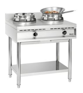 Afmetingen B x D x H: 900.0 x 600.0 x 960.0 mm Voeten in hoogte verstelbaar: Ja Soort kookpitten: Wokring-opzet Grootte kookpitten: 290 mm Waakvlam: Ja Type: Standapparaat Aantal kookpitten: 2 In hoogte verstelbaar tot: 985 mm Gassoort: Vloeibaar gas 50 mbar Aardgasmondstukken H 20 mbar zijn bijgevoegd Eigenschappen: Brander zonder gereedschap verwijderbaar Brander thermo-elektrisch beveiligd Afzonderlijk regelbare verwarmingszones Kookpitten zonder wokring-opzet voor pannan vanaf 200 mm Gasbrander: High performance brander Verdeling kookpitten: 2 x 11 5 kW Ontstekingssoort: Handmatige ontsteking In hoogte verstelbaar van: 960 mm Werkingsmodus: Gas Materiaal:CNS 18_10 Vetopvangbak: Ja Aansluitwaarde: 23 kW