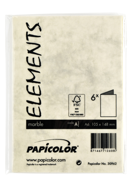 Eigenschappen "Correspondentiekaart Papicolor dubbel 105x148mm marmer ivoor pak à 6 stuks"