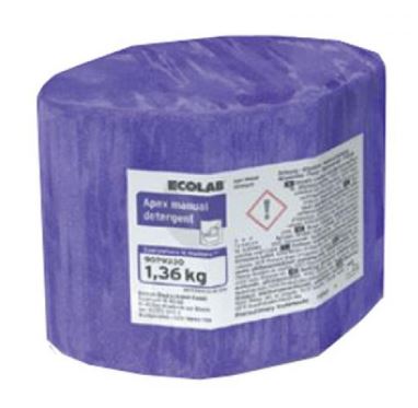 Ecolab Apex Manual Detergent is een geconcentreerd handafwaswasmiddel. Door de unieke blokvorm is het verbruik 100 procent en neemt het nauwelijks kostbare opslagruimte in beslag. Het vullen van de doseerunit gaat in een mum van tijd en is veilig.