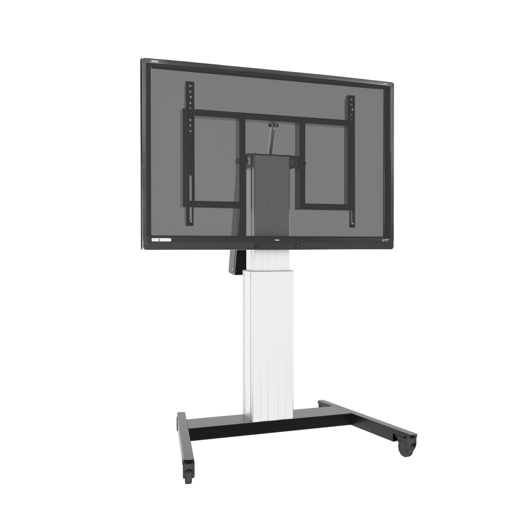 Elektrisch in hoogte verstelbare en kantelbare tv-trolley voor het opnemen van touchscreen-monitoren van 42 - 86" schermdiagonaal. Conen Mounts "SCETTAVA" is verrijdbaar, in hoogte verstelbaar en kantelbaar en is een van de meest verkochte mobiele monitorstandaarden. De tv-trolley is ontworpen voor gebruik in universiteiten, hotels etc. en bedrijven voor het werken in kleine groepen.De mobiele monitorstandaard is 50 cm in hoogte verstelbaar en 0-90° kantelbaar - beide instellingen zijn elektrisch.De mobiele monitorstandaard maakt het gebruik van elke monitor of tv met een schermgrootte van 42"-86" in blackboard-modus of als tafelsysteem of in elke stand daar tussenin. Het systeem is tegelijkertijd of na elkaar in hoogte en hoek verstelbaar en kan in elke stand worden gestopt. De apparatuur met vier met rubber beklede lichtlopende rollen zorgen ervoor dat het systeem gemakkelijk tussen verschillende kamers kan worden verplaatst en maken de tv-trolley nog aantrekkelijker ideale oplossing voor werkomgevingen waarin een hoge mate van flexibiliteit vereist is. De tv-trolley wordt gedemonteerd geleverd in drie verpakkingseenheden en kan per pakketdienst worden verzonden.