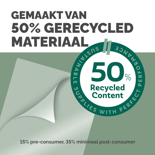 Geef je documenten een nette, professionele uitstraling met deze A3 lamineerhoezen, ontworpen voor dagelijks gebruik en duurzame prestaties. Gemaakt van 50% gerecycled materiaal (minimaal 35% post-consumer, 15% pre-consumer) bieden ze betrouwbare bescherming en ondersteunen ze milieubewuste keuzes. De hoogwaardige glansafwerking zorgt voor veelzijdigheid en visuele aantrekkingskracht, ideaal voor een breed scala aan lamineertaken. Ontworpen voor gebruik op een instelling van 70/80 micron bevat elke hoes een antistatische toevoeging voor soepel en probleemloos gebruik. Verpakt in papiergebaseerde materialen uit duurzame bronnen, inclusief de hoesdrager, tape en buitenverpakking, is deze set van 100 hoezen een slimme keuze voor zowel thuis als op kantoor.