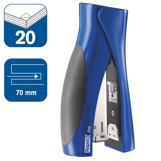 * Handige, sterke, rechtopstaande nietmachine met stalen mechanisme en ergonomische rubberen handgreep. Ideaal voor thuis en op kantoor. * Producteigenschappen; * Niet tot 20 vel (80-grams papier). * Handige verticale stand. * Sterk stalen mechanisme. * Ergonomische rubberen handgreep. * Voor 24/6 en 26/6 Rapid Strong nietjes. * 5 jaar garantie bij gebruik van Rapid nietjes.
