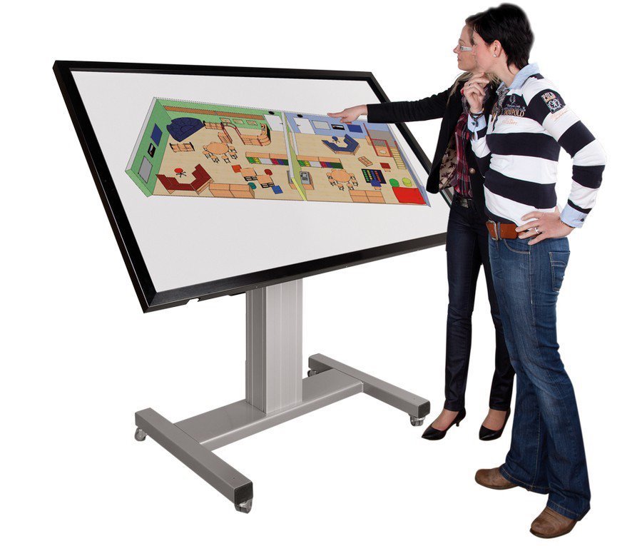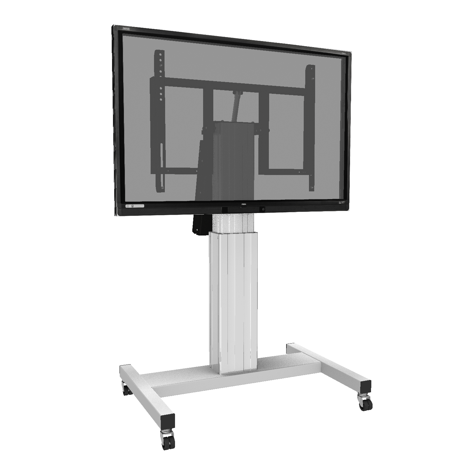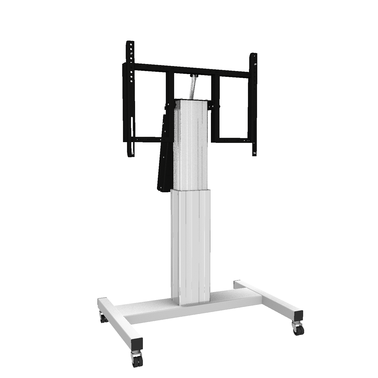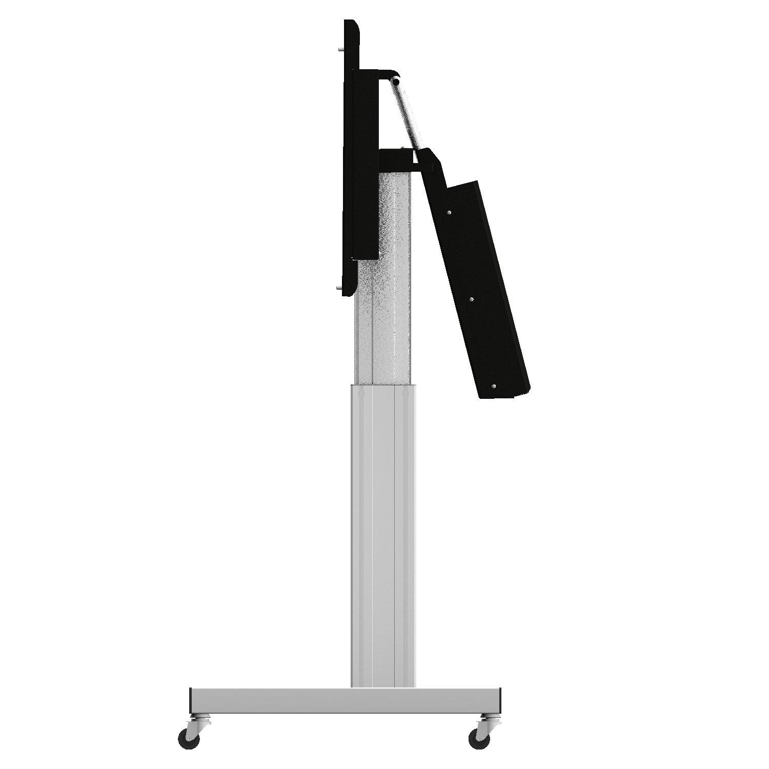 Elektrisch in hoogte verstelbare en kantelbare TV-trolley voor opname van touchscreen-monitoren van 42 - 86" diagonaal. Conen Mounts "SCETTA" is verrijdbaar, in hoogte verstelbaar en kantelbaar en is een van de meest verkochte TV-trolleys. Het systeem is ontwikkeld voor gebruik in universiteiten, hotels en bedrijven ontwikkeld voor samenwerking in kleine groepen.De mobiele monitorstandaard biedt een hoogteverstelling van 50 cm en een kanteling van 0-90° - beide aanpassingen worden elektrisch gedaan.De mobiele monitorstandaard maakt het gebruik van elke touchscreen-monitor van 42"- 86" in board-modus of als tafelsysteem of in elke stand daar tussenin. Het systeem kan tegelijkertijd of achter elkaar in hoogte en hoek worden versteld en kan in elke positie worden gestopt. De uitrusting met vier rubberen gladde looprollen zorgen ervoor dat het systeem gemakkelijk tussen verschillende kamers kan worden verplaatst en maken de tv-trolley opnieuw de ideale oplossing voor werkomgevingen waarin een hoge mate van flexibiliteit vereist is. De tv-trolley wordt gedemonteerd geleverd in drie verpakkingseenheden en kan per pakketdienst worden verzonden.