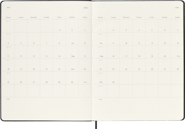 Eigenschappen "Agenda 2025/2026 Moleskine 18M Planner Weekly 7dagen/1pagina XL hc black"