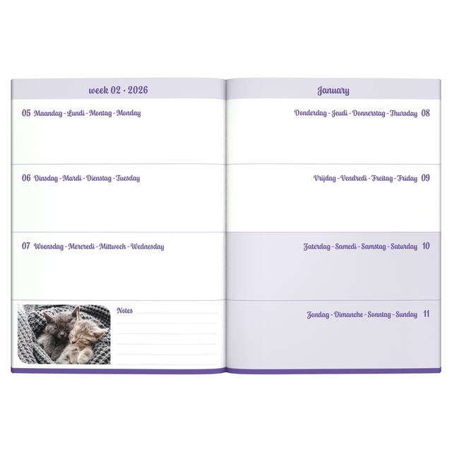 Eigenschappen "Agenda 2026 Lannoo 110x150 My favourite friends 7dagen/2pagina's cats"