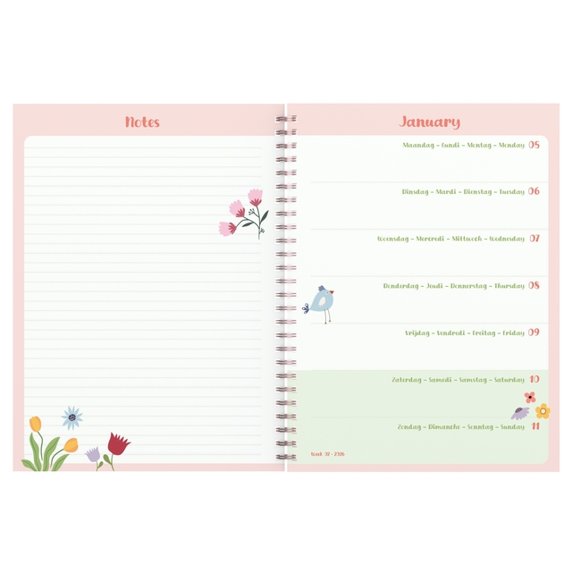 Eigenschappen "Agenda 2026 Lannoo bureau 170x230 Fragile 7dagen/2pagina's roze"