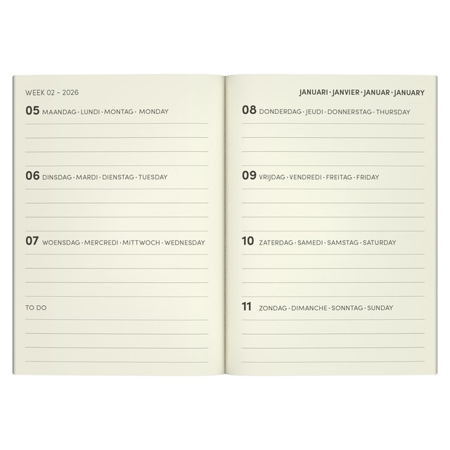 Met deze stijlvolle roze Flowers Bouquet pocket agenda, hou je al je afspraken overzichtelijk bij de hand! Binnenin vind je telkens 7 dagen op 2 pagina's, een maandplanner en ruimte voor nota's, op crèmekleurig papier. Het binnenwerk is in het Nederlands, Frans, Duits en Engels. De harde kaft heeft een matte finish, en de agenda is voorzien van een praktisch leeslint.