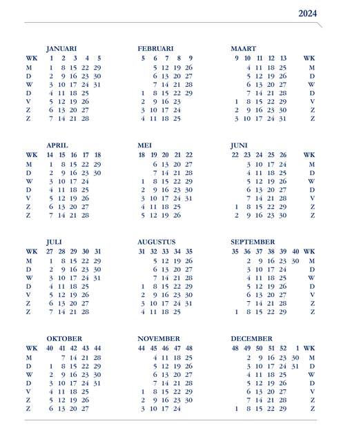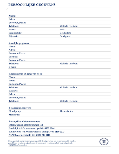 * Extra groot lettertype voor betere leesbaarheid. * Uurindeling 8.00-21.00 uur. * Hoekperforatie. * Leeslint. * 70gr papier. * Tweekleurendruk. * Nederlandstalig. * 14-Maands kalender: laatste 2 weken van december, daarna het hele jaar en dan de eerste weken van januari.* Jaarkalender op elke pagina. * Extra ruimte voor notities en telefoontjes. * Meegebonden adressenlijst. * Garengebonden. * Kunstlederen omslag.