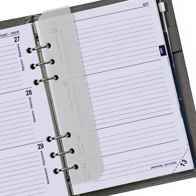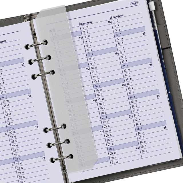 * A5 jaardoos 1 week per 2 pagina's. * Bij de jaardoos krijgt u het complete calendarum (no 6207-25), u krijgt extra 5 tabbladen, een adresset, paginascheider, een ritshoesje en een bewaardoos die u ook kunt gebruiken om uw agendavulling van vorig jaar te bewaren. * Houd uw A5 kalender georganiseerd met deze navulverpakking. * Het past perfect in uw agenda. * U krijgt 160 pagina's wit papier met blauwe opdruk, met één week op 2 pagina’s en tijdsindeling van 9:00 uur tot 18:00 uur. * U kunt al uw afspraken in haar bijhouden. * Met een week voor elke pagina heeft u maximale ruimte voor uw afspraken. * De afmetingen zijn: 145x210 mm papier, gatenafstand van 19 - 19 - 70 - 19 - 19mm. * Daarnaast bevat het een jaarplanner voor 2025 en 2026. * De taal is zowel in het Nederlands als in het Engels. * Dit navulpakket werkt met A5 organizers van vele populaire merken, waaronder Kalpa, Succes, en Filofax. * Houd uw agenda georganiseerd en op koers!