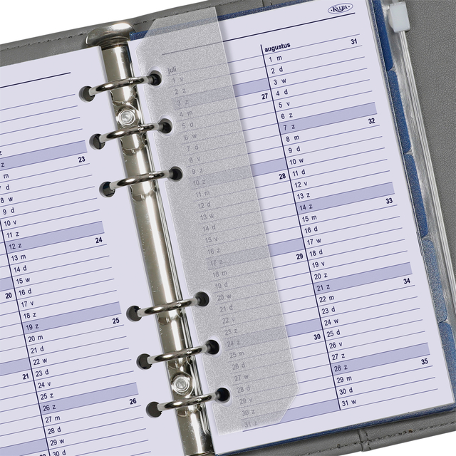 * Personal jaardoos 1 week per 2 pagina's. * Bij de jaardoos krijgt u het complete calendarum. * U krijgt extra 5 tabbladen, een adresset, paginascheider, een ritshoesje en een bewaardoos die u ook kunt gebruiken om uw agendavulling van vorig jaar te bewaren. * Houd uw Personal agenda georganiseerd met deze navulverpakking. * Het past perfect in uw agenda. * U krijgt 160 pagina's wit papier met blauwe opdruk, met één week per pagina en tijdsindeling van 9:00 uur tot 18:00 uur. * U kunt al uw afspraken in haar bijhouden. * Met een week voor elke pagina heeft u maximale ruimte voor uw afspraken. * De urenindeling van 9:00 tot 18:00 uur is voorgedrukt op de pagina. * De afmetingen zijn: 95x170mm papier, gatenafstand van 19 - 19 - 52 - 19 - 19mm. * Daarnaast bevat het een jaarplanner voor 2025 en 2026. * De taal is zowel in het Nederlands als in het Engels. * Dit navulpakket werkt met Personal organizers van vele populaire merken, waaronder Kalpa, Succes Standaard, en Filofax. Houd uw agenda georganiseerd en op koers!