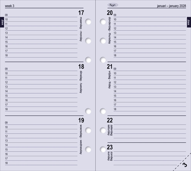 Eigenschappen "Agendavulling 2026 Kalpa Personal jaardoos 7dagen/2pagina's"