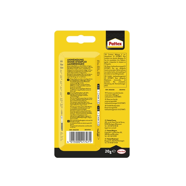 Als je Pattex producten op werkdagen voor 16.00 bestelt dan krijg je het de eerstvolgende werkdag thuis of op kantoor geleverd. Heb je hulp nodig bij het bestelproces? Bel of mail ons gerust, wij helpen je graag verder.