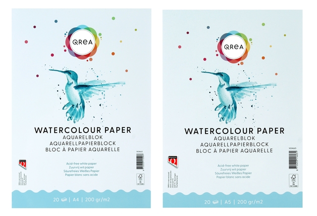 * Of je nu een beginner bent of een professionele kunstenaar, dit aquarelblok van Qrea is geschikt voor iedereen! * Ideaal papier voor de eerste stappen in het aquarelleren en andere natte technieken.* Dit aquarelblok heeft een dubbele spiraal. * Het bevat zuurvrij papier, dat niet vergeelt niet na verloop van tijd. * Het harde karton aan de onderkant zorgt voor optimaal gebruiksgemak. * Afmeting: A4 formaat. * Blok à 20 vellen 200 grams papier. * Diverse formaten beschikbaar. * Geproduceerd in Nederland.