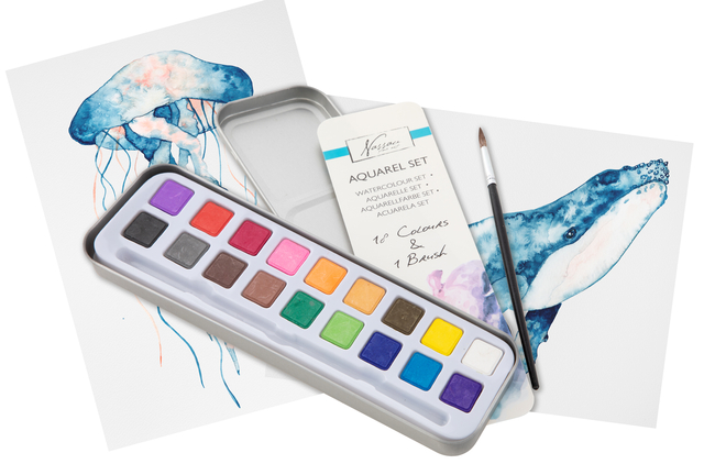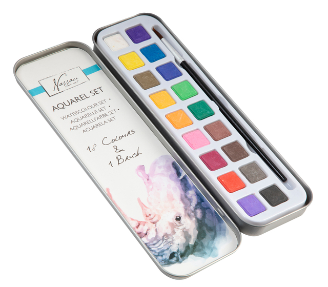Eigenschappen "Aquarelverf Nassau Art blik à 18 napjes en penseel"