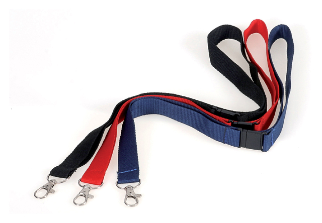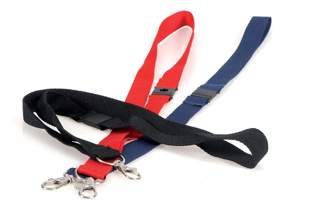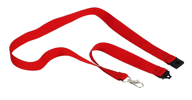 * Badgekoord van textiel voor badge- of pashouders. * Voorzien van een metalen karabijnhaak en kunststof veiligheidssluiting. * Ook geschikt als sleutelhanger. * Lengte 44cm. Breedte 20mm. * Kleur rood. * Verpakt per 10 stuks.
