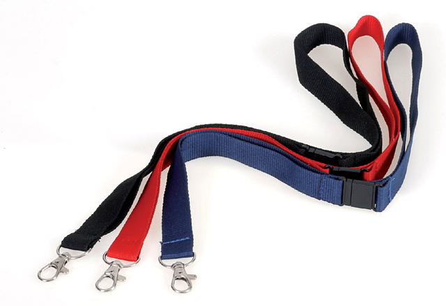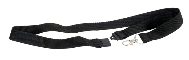 * Badgekoord van textiel voor badge- of pashouders. * Voorzien van een metalen karabijnhaak en kunststof veiligheidssluiting. * Ook geschikt als sleutelhanger. * Lengte 44cm. Breedte 20mm. * Kleur zwart. * Verpakt per 10 stuks.