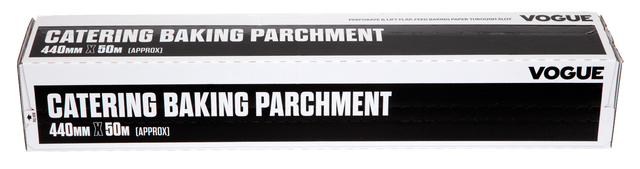 * Hoge kwaliteit, 44cm breed bakpapier van Vogue op handige rol van 50 meter. Het papier is aan beide zijden voorzien van een siliconen coating, waardoor het eten er niet aan vast blijft plakken. * Met een lengte van 50m kunt u lange tijd vooruit en dankzij de scherpe kartelrand op de verpakking scheurt u eenvoudig een vel van de gewenste lengte af.