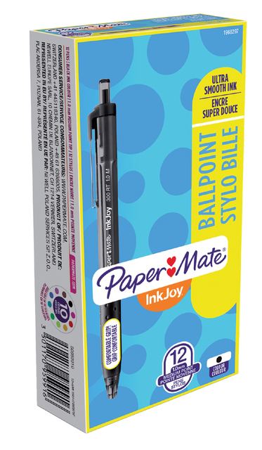 * InkJoy is een revolutionair inktsysteem dat snel en gelijkmatig gebruiksklaar is, dat slechts een minimale handdruk vereist en dat altijd scherpe, zuivere lijnen garandeert. * Met rubber beklede driehoekige greep voor comfort en controle. * Doorschijnende en gekleurde houder voor een frisse uitstraling. * Intrekbare punt voor optimaal gebruiksgemak. * Schrijfbreedte medium.