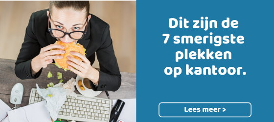 Door de bank genomen herbergen je toetsenbord, muis en telefoon zo’n 10 miljoen bacteriën; dat zijn er 400 keer meer dan de gemiddelde wc-bril. En dat is nog maar het topje van de bacteriën-ijsberg op kantoor. Hoe zorg je voor een gezonde en hygiënisch schone werkplek? Wij hebben 7 tips voor je verzameld.