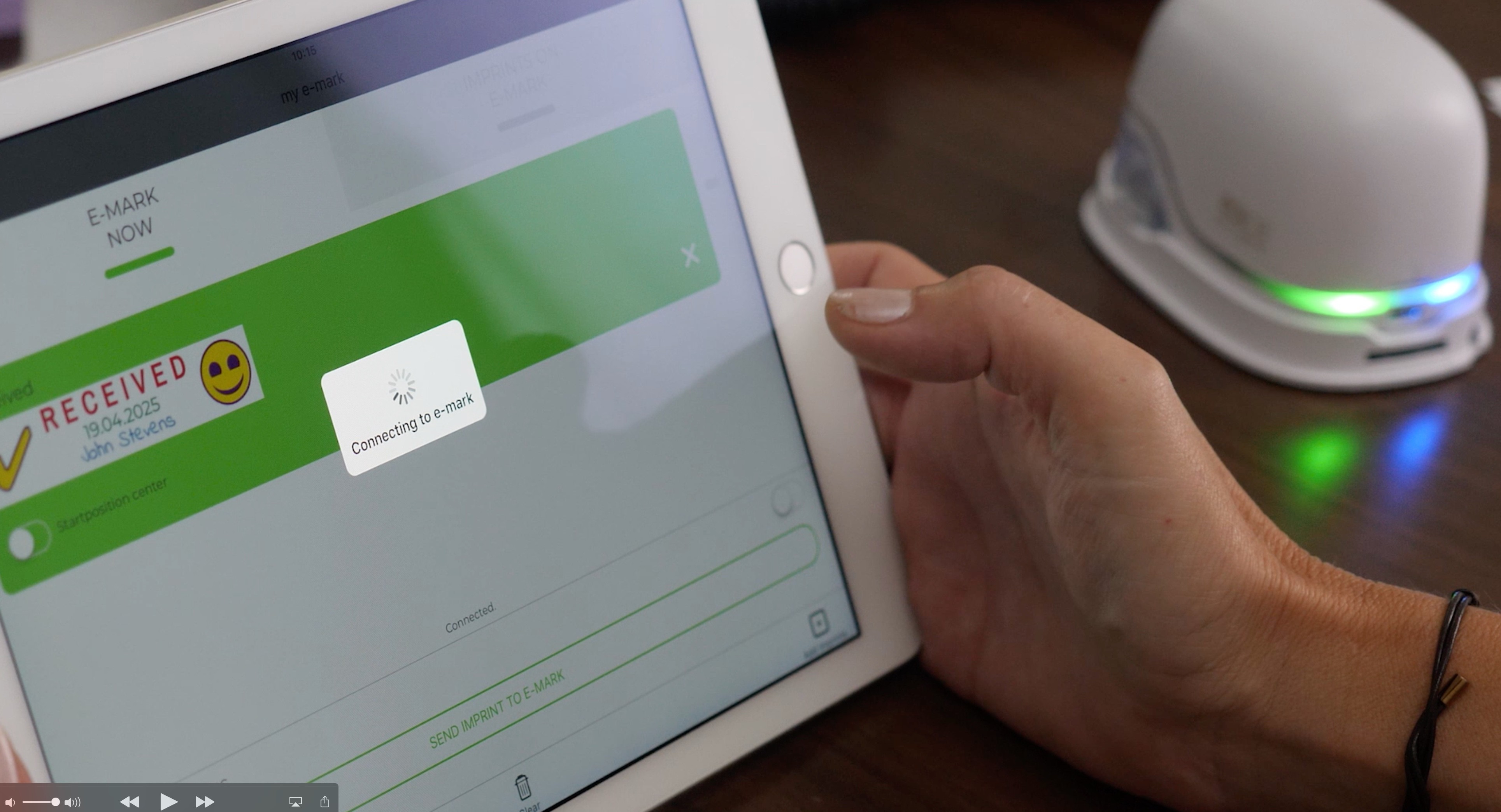De COLOP e-mark is de nieuwste generatie stempel. Briljant & uniek tegelijk, want met dit elektronische printertje kun je altijd en overal je stempel op drukken. Het allermooiste: je kunt zoveel afdrukontwerpen maken als je wilt. De e-mark is dé must-have van het jaar. Bekijk het filmpje en laat je verleiden.