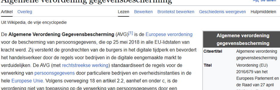 Meer weten over de AVG? Kijk dan hier: https://nl.wikipedia.org/wiki/Algemene_verordening_gegevensbescherming