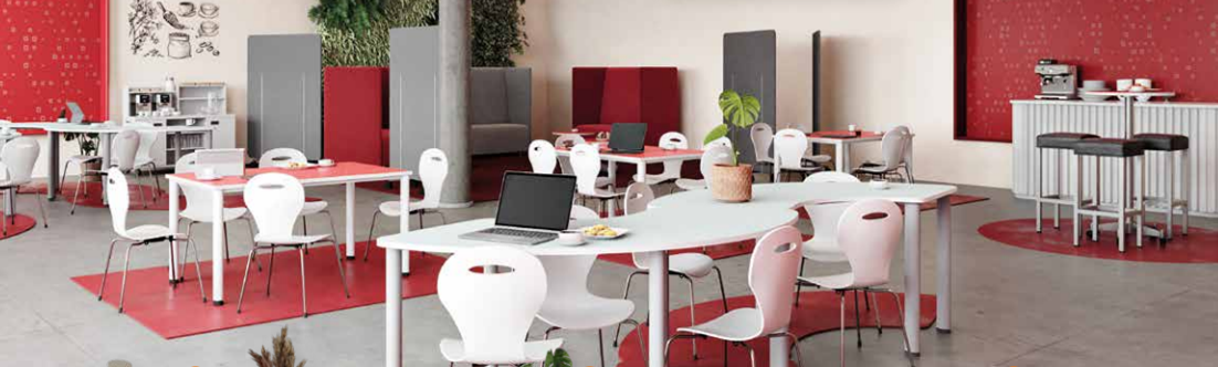 Möbelwerk Niesky biedt stoel- en tafelfamilies zoals de IRON- en LIMBI-serie, die verkrijgbaar zijn in een breed palet van kleuren. Denk hierbij aan frisse tinten zoals limoengroen, mandarijn en aardbeienrood. Deze kleuren bevorderen niet alleen een vrolijke sfeer, maar ondersteunen ook het gevoel van samenhang en rust, zelfs in een drukke kantine.