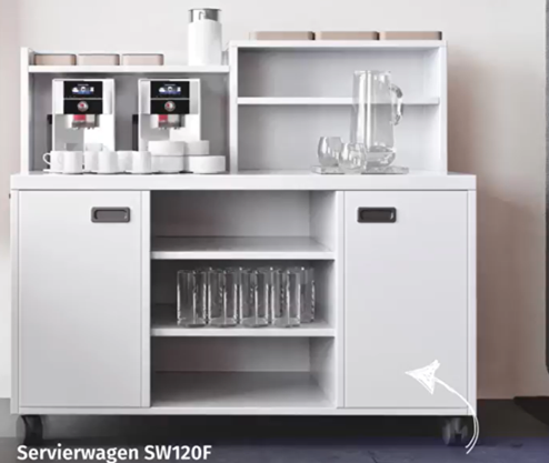 Naast de standaardoplossingen heeft Möbelwerk Niesky ook innovaties die het dagelijkse gebruik van de kantine verbeteren, zoals:Serveerwagen SW120F