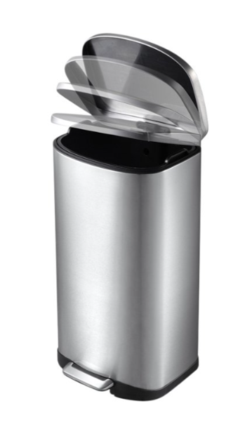 Een elegant model met geruisloos sluitend deksel, vingerafdrukbestendige coating en handige openhoudfunctie om afvalzak of binnen-emmer te verwisselen. - EKO E‑Cube pedaalemmer (20, 40, 50 L)