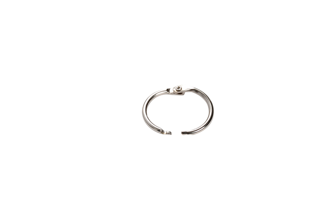 * Metalen ring die scharniert in het midden, bijv. voor het verzamelen van mappen, boeken, etc. * Diameter 19mm, dikte 2mm. * Zakje à 10 stuks.