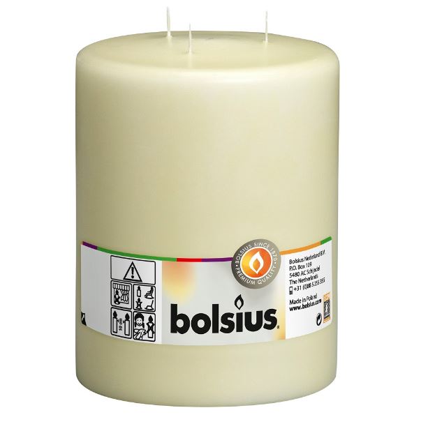 Bolsius Mammoetkaars Ivoor 200_150 is een grote kaars met drie lonten. Op deze manier brandt de kaars gelijk op. De mammoetkaars is stijlvol heeft 100 branduren en een diameter van 15cm.