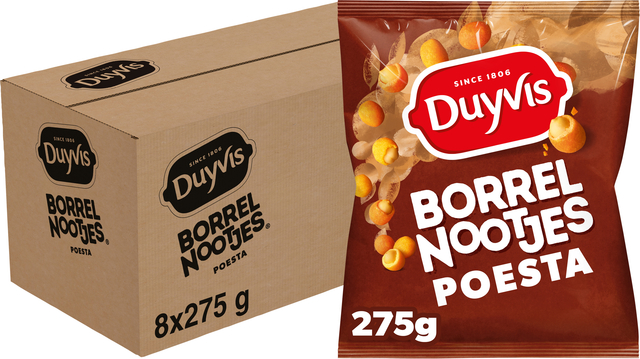 Die gezellige momenten hoeven niet alleen thuis plaats te vinden! Want met Duyvis is ook werken een feestje, en dat mag je er ook van maken. Die o zo lekkere borrelnootjes zijn er namelijk ook in zakken van 1 kilo! En dat geldt ook voor de gewone, maar ook ontzettend lekkere gezouten pinda?s. Veel te veel om in je eentje of met je familie op te eten, maar met al je collega?s gaan die dingen lekker op! En dat tegen een zacht prijsje ook nog.