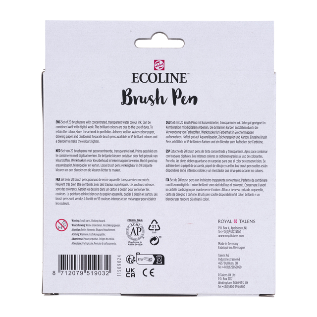 Eigenschappen "Brushpen Talens Ecoline set à 20 stuks landschap"