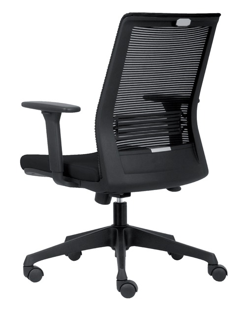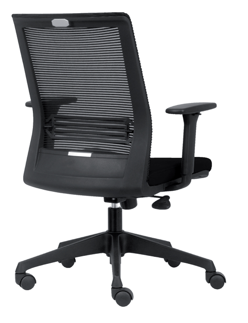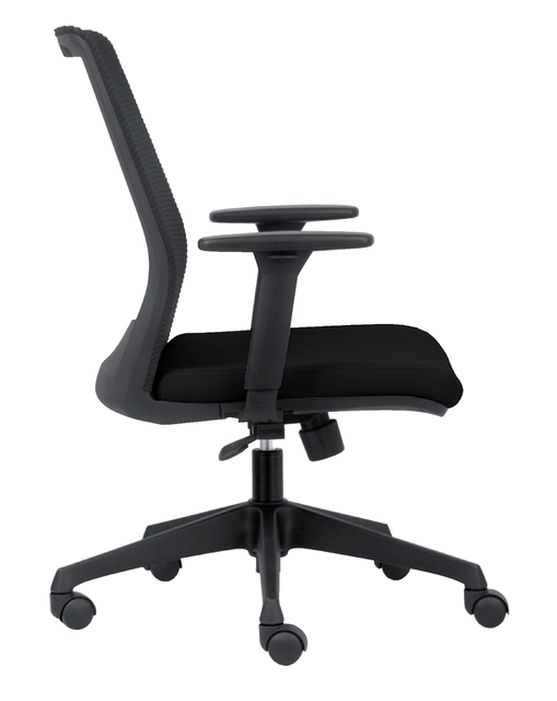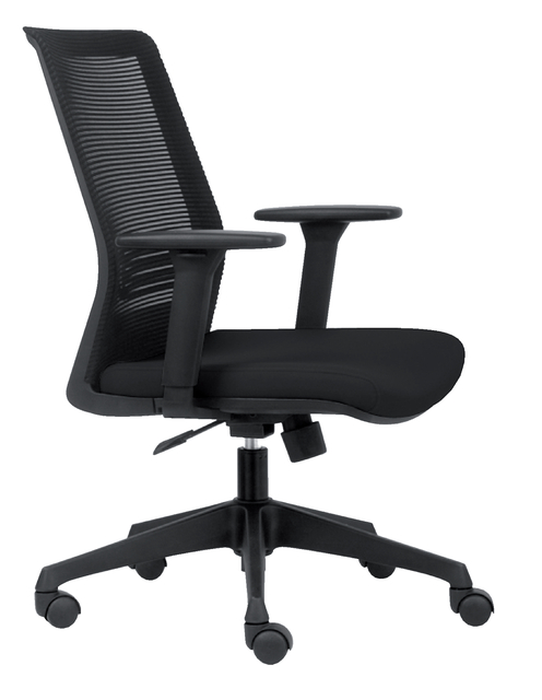 * Eigentijdse bureaustoel met kunststof voetenkruis. * DIN gaslift. * 1-locking kantelmechaniek. * Instelbare gewichtsregeling. * In hoogte verstelbare lendensteun. * Zwart uit voorraad leverbaar. * 1 jaar garantie. * Exclusief verstelbare armleggers, deze zijn optioneel leverbaar. * Materiaal zitting: stof, foam en multiplex. * Rugbreedte 66cm. en rughoogte 97-106cm. * Zitbreedte 50cm en zitdiepte 46,5cm. * Zithoogte 46-55cm. * Dit artikel dient nog gemonteerd te worden. * Garantie 1 jaar.