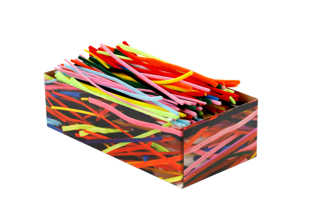 * Deze grote doos met chenilledraad, ook wel bekend als pijpenragers, met hun mooie stevige nylon borstelharen, zijn geweldig om je creativiteit te uiten. * Chenille is een ideaal accessoire voor tal van creatieve hobbyprojecten. * De pijpenrager is eenvoudig te vormen zoals u dat wilt en u kunt de uiteinden gemakkelijk aan elkaar bevestigen door te draaien zonder lijm te gebruiken. * Chenilledraad biedt een schat aan creatieve mogelijkheden. * Gebruik ze om grappig haar, armen, benen, vleugels enz. te maken voor je figuren. * Doos à 700 stuks in verschillende kleuren. * Lengte: 30cm. * Dikte: 4, 6 en 9mm.