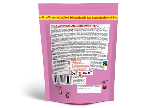 Eigenschappen "Chocolade Tony's Chocolonely Lil' Bits melk marshmallow & biscuit 150 gram"