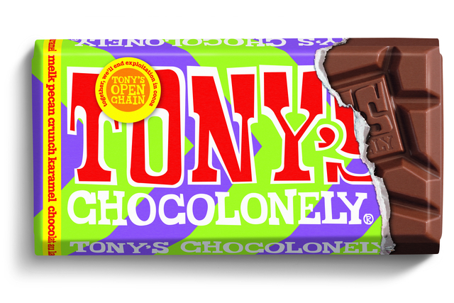 Chocolade Tony's Chocolonely melk karamel pecan crunch reep 90 gram