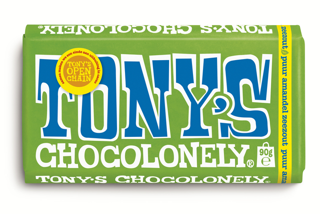 Chocolade Tony's Chocolonely puur amandel zeezout reep 90 gram