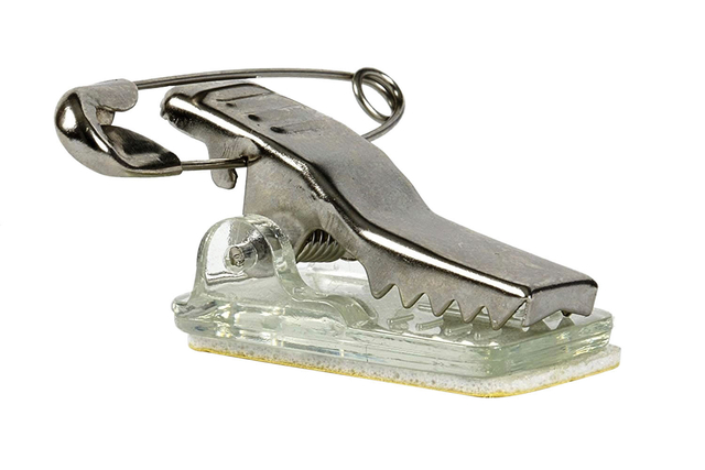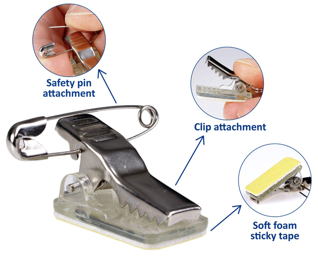 * Zelfklevende clip en speld om op een badge te plakken afmeting 23 x 13 mm.
