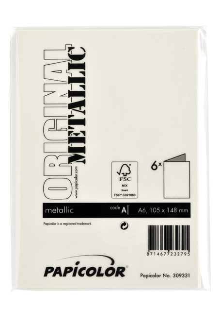 Eigenschappen "Correspondentiekaart Papicolor dubbel 105x148mm metallic ivoor pak à 6 stuks"