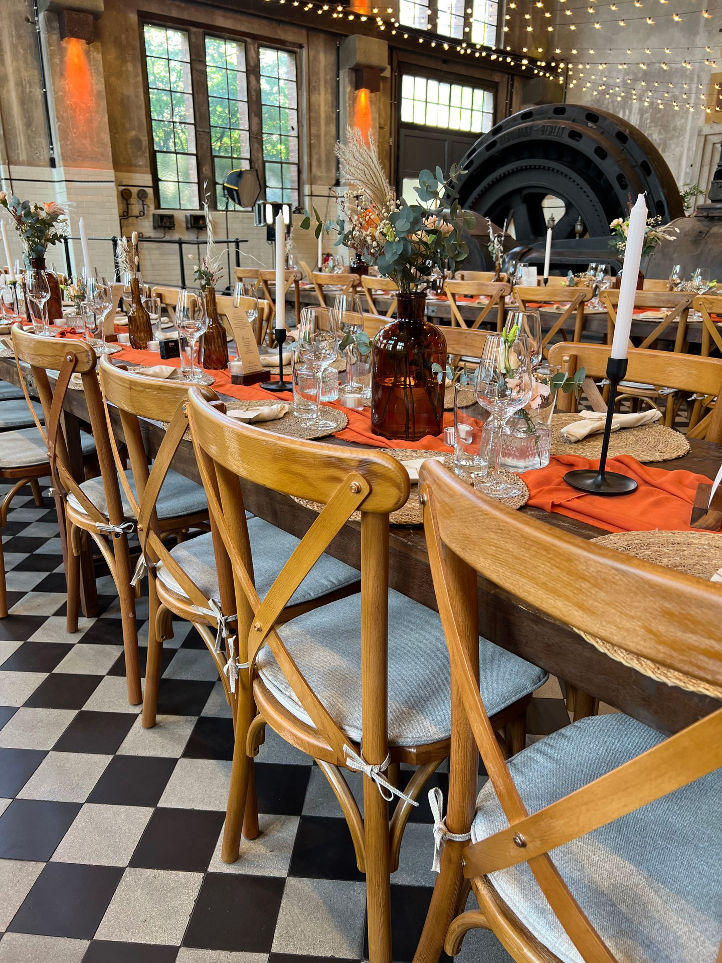 De Crossback stoel weer helemaal terug van weggeweest. De stoel heeft een elegante rugleuning en is daarmee ideaal om een bijzondere uitstraling te creëren op bijvoorbeeld bruiloften. Het model kan in verschillende sferen worden gebruikt en geeft een landelijke of rustieke uitstraling. De stoel is verkrijgbaar in verschillende kleuren en door eventuele aankleding met bijpassende kussens creëer je een sfeer geheel naar eigen wens. Naast het stoelmodel is er ook een barkruk variant verkrijgbaar in verschillende kleuren.