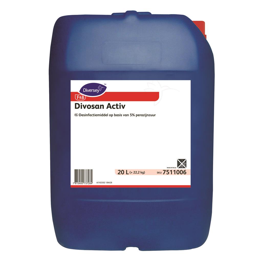 Divosan Activ is een zeer effectief oxiderend desinfectiemiddel op basis van perazijnzuur voor gebruik in de voedingsmiddelen- dranken- en zuivelindustrie. - Divosan Activ is een gestabiliseerde perazijnzuuroplossing 5Proc die niet schuimt en gemakkelijk af te spoelen is. Het is een zeer effectief desinfectiemiddel tegen alle vormen van micro-organismen waaronder bacterien gisten schimmels en sporen. - Divosan Activ is een desinfectiemiddel dat speciaal geformuleerd is voor gebruik in geautomatiseerde CIP systemen. Het verwijdert tevens uitstekend vlekken en geuren. Divosan Activ wordt aanbevolen voor automatische injectie met geschikte CIP doseerapparatuur. Toepassing Divosan Activ is een zeer effectief oxiderend desinfectiemiddel op basis van perazijnzuur voor gebruik in de voedingsmiddelen- dranken- en zuivelindustrie. Voordelen - Ruim toepasbaar en effectief CIP desinfectiemiddel dat gebruikt kan worden in brouwerijen de zuivelindustrie frisdrankenindustrie en in de voedselverwerkende industrie. - Krachtige oxiderende werking die ook uitstekend geuren en vlekken verwijdert. - Gemakkelijk afspoelbaar en bevat geen kleurstoffen dus geschikt voor oppervlakken die in aanraking komen met voedingsmiddelen. - Ingredienten zijn makkelijk afbreekbaar en zijn onschadelijk in het afvalwater. - Geschikt voor gebruik in zowel zacht als hard water. Technische gegevens Uiterlijk heldere kleurloze vloeistof Relatieve dichtheid bij 20oC 1.11 pH 1Proc oplossing bij 20oC 3.1 COD-waarde Chemical Oxygen Demand geen Stikstofgehalte N geen Fosforgehalte P lager dan 0.1 g_kg De bovenstaande gegevens zijn gemiddelde productiewaarden en kunnen niet worden opgevat als specificatie.
