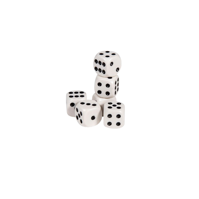 Clown Games set van 6 dobbelstenen op blisterkaart. Afmetingen van de dobbelsteen: 1,6 x 1,6 x 1,6 cm.
