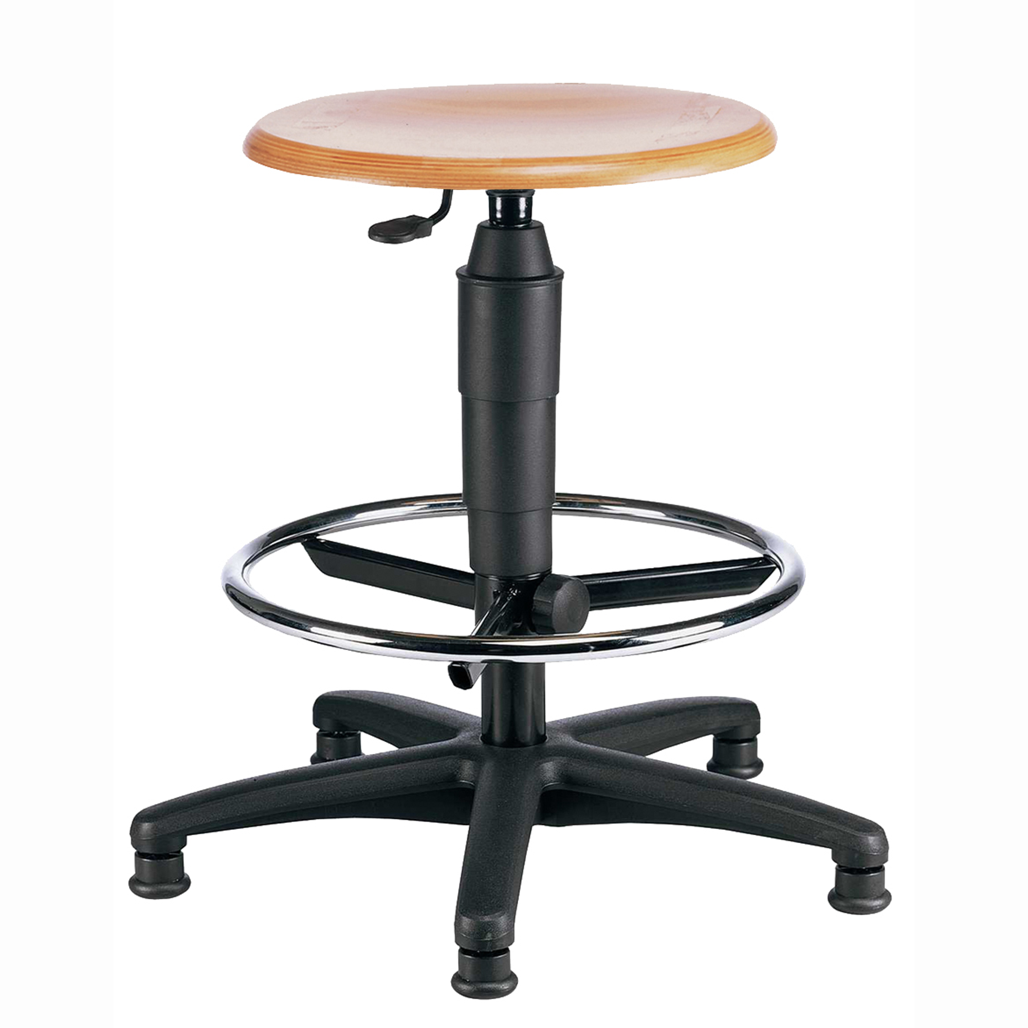 Onze draaikruk met traploze zithoogteverstelling en veiligheidsgasveer, met zijn elegante en stabiele zwarte kunststof voet, is perfect om snel en eenvoudig een zitplek te creëren. Bovendien met verchroomde voetring om de voeten neer te zetten. Hij past onder alle tafels en is snel bij de hand. Met zijn praktische kunststof glijders wordt ook de vloer beschermd. De zitting is gemaakt van naturel beukenhout.