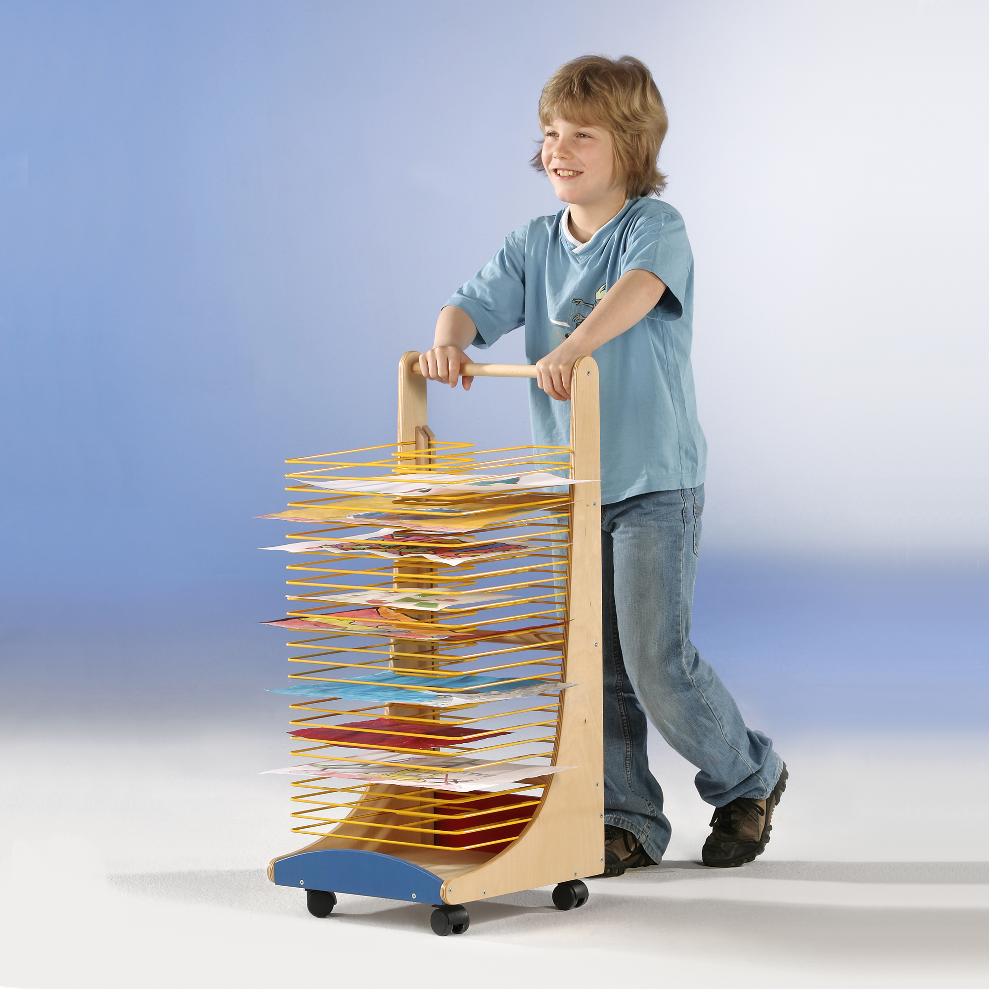 Dankzij een fris en fruitig design ziet deze verrijdbare droogtrolley er Super uit ! 25 roosters in het formaat DIN A3 bieden voldoende ruimte om papieren en kartonnen vellen te laten drogen. De handige handgreep bevindt zich op een ergonomisch verantwoorde hoogte en zorgt voor een optimale flexibiliteit. 4 zwenkwielen vergemakkelijken de verrijdbaarheid .Technische specificaties:Breedte: 40 cmHoogte: 83 cmDiepte: 40 cmverrijdbaar25 roosters in het formaat DIN A3