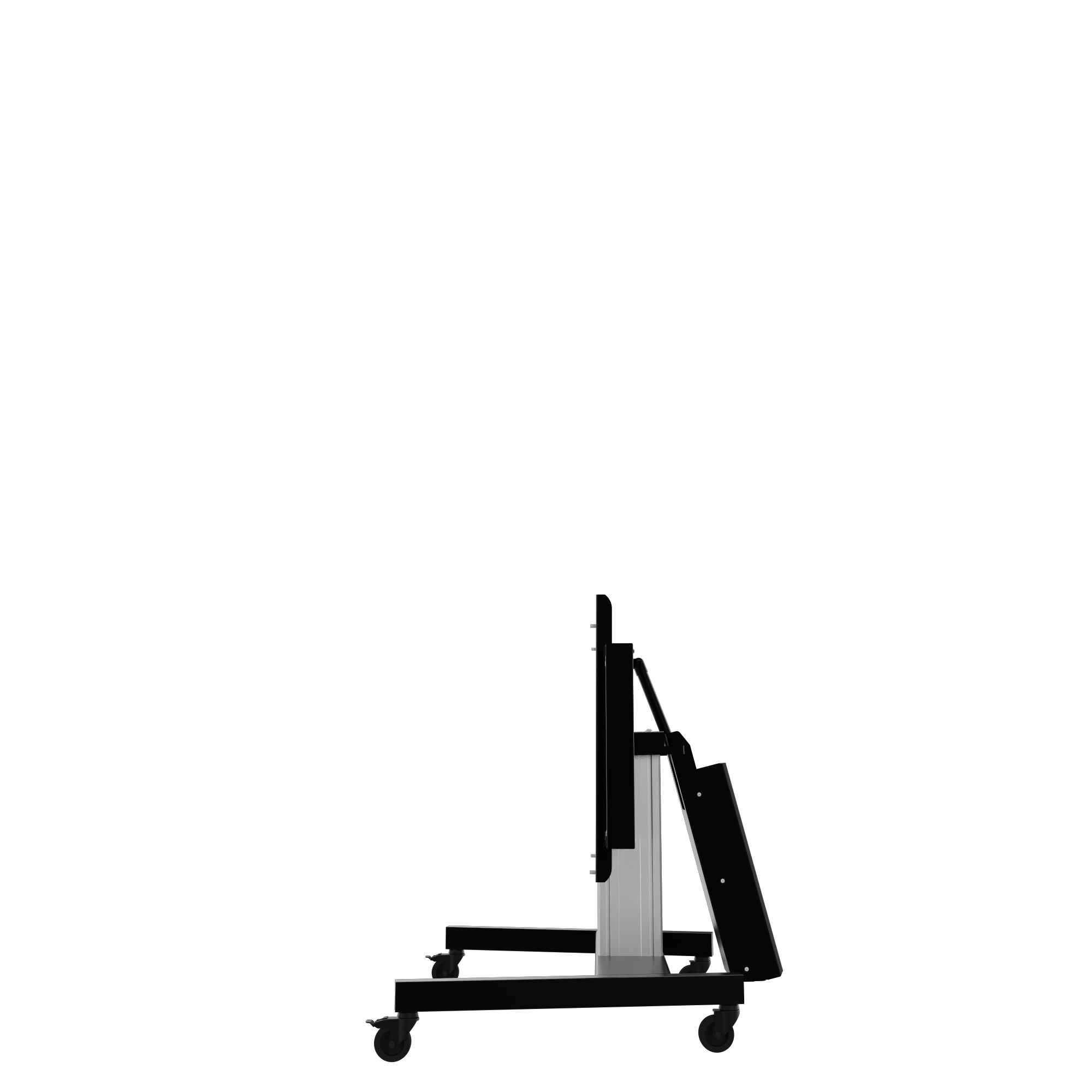 Dit is een elektrisch in hoogte verstelbaar systeem. Deze is verrijdbaar en kantelbaar. De V-voet maakt hem veilig en stabiel.