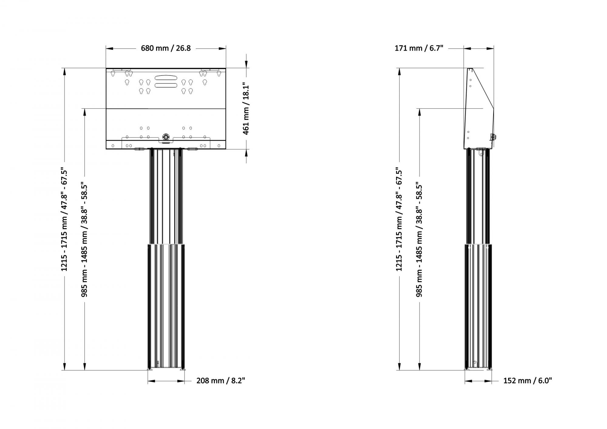 Elektrisch hoogte verstelbaar TV standaard 95-145 cm voor 42 tot 70 inch schermen voor wandmontage