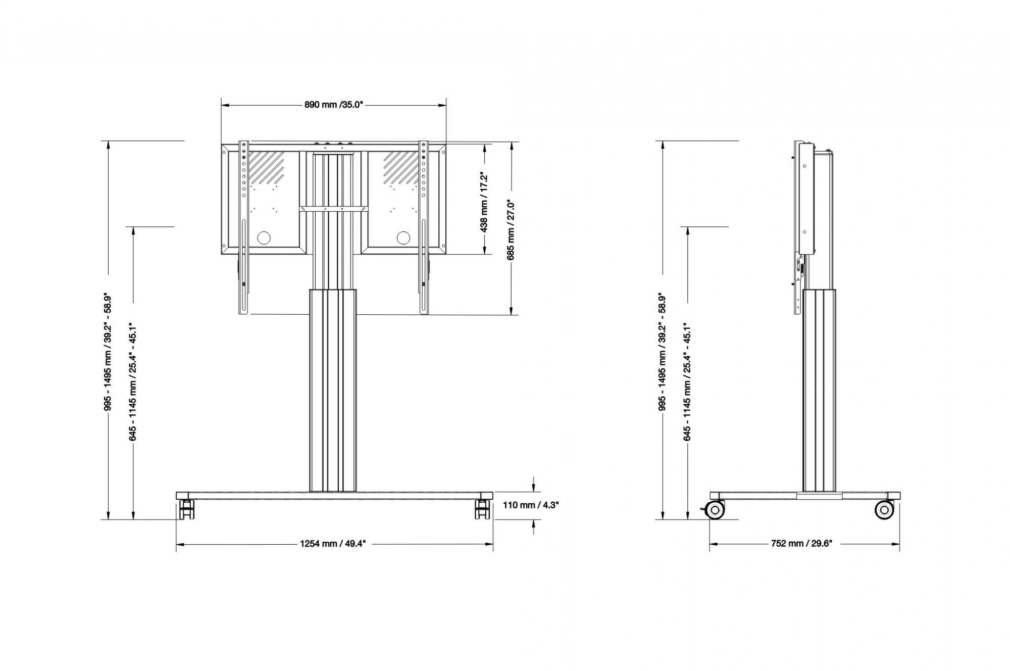 Elektrisch in hoogte verstelbaar rolstatief en verrijdbare houder, Lite serie met 50 cm slag