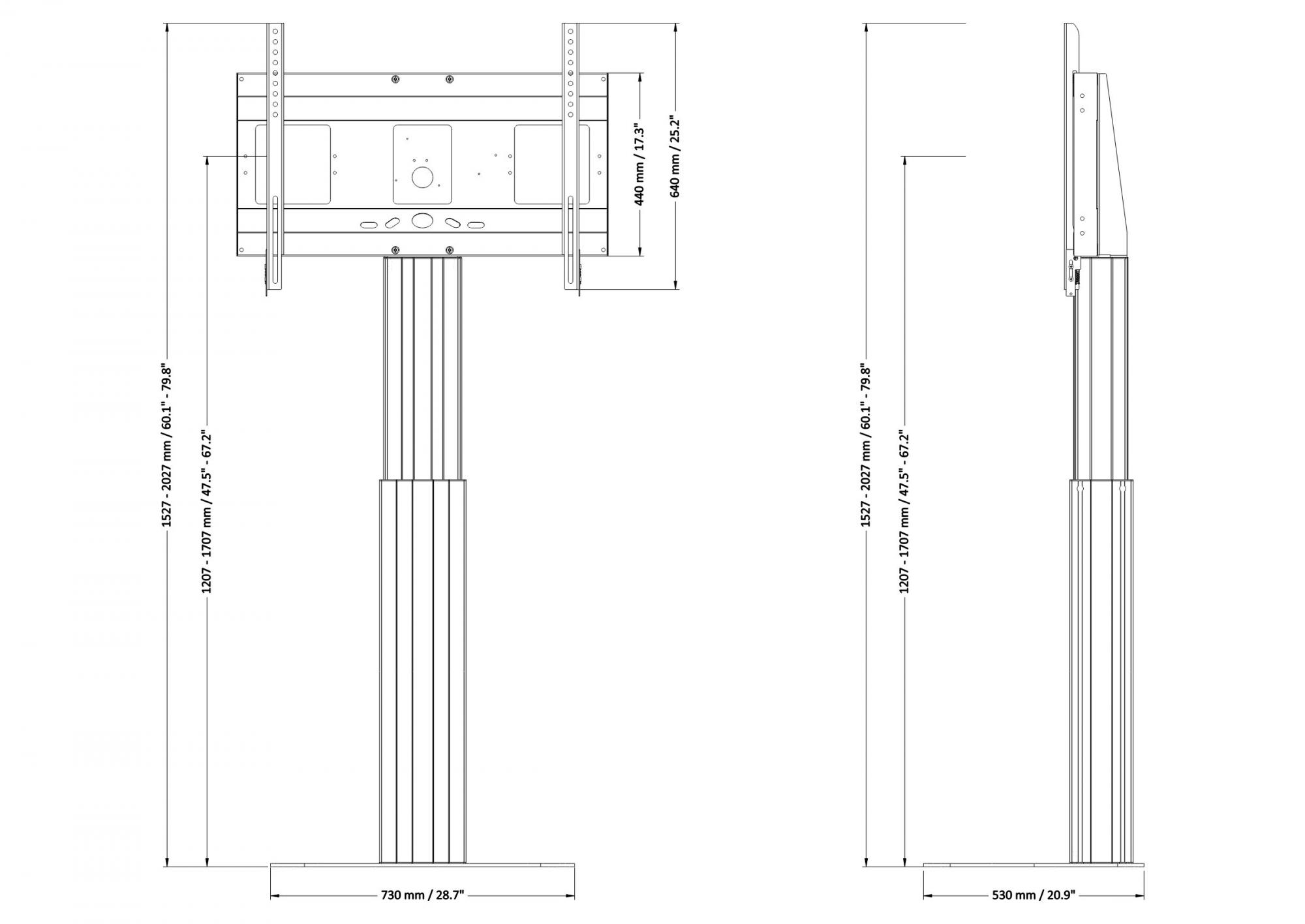 Elektrisch in hoogte verstelbare displaystandaard met 50 cm slag
