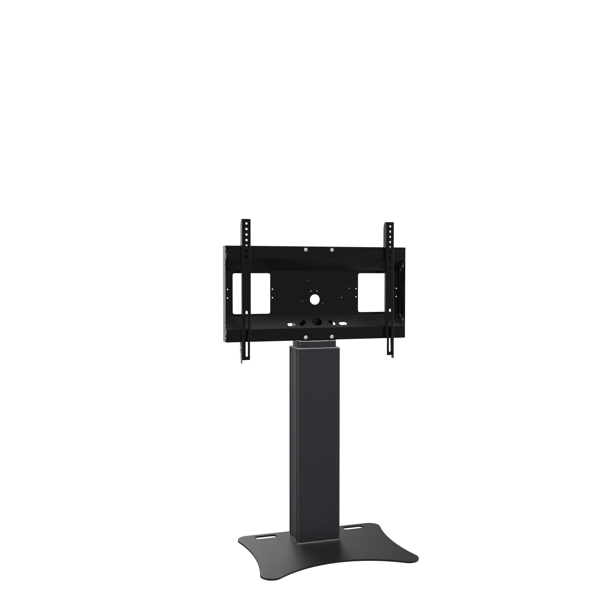Elektrisch in hoogte verstelbare displaystandaard voor 42"-100" (interactieve) flat panel displays. Geschikt voor wandmontage. De SCETAPBK is geschikt voor beeldschermen met een schermgrootte tot 100". Het systeem bevat een stabiel frame voor het plaatsen van het beeldscherm met geïntegreerd kabelbeheer en twee ophangrails met snelsluitingen voor een snelle en eenvoudige montage van het beeldscherm. Het SCETAPBK beeldscherm standaard wordt geleverd met een pyloonzuil met een slag van 50 cm Onder de pylonzuil wordt een 8 mm dikke stalen plaat bevestigd Het systeem kan vrijstaand in de ruimte worden geplaatst of aan een lichtgewicht wand worden gemonteerd Uitsparingen/handgrepen in de voetplaat vergemakkelijken De plaat is zwart gepoedercoat kunststof Het systeem wordt gedemonteerd in drie pakketten geleverd en kan per koeriersdienst worden verzonden.