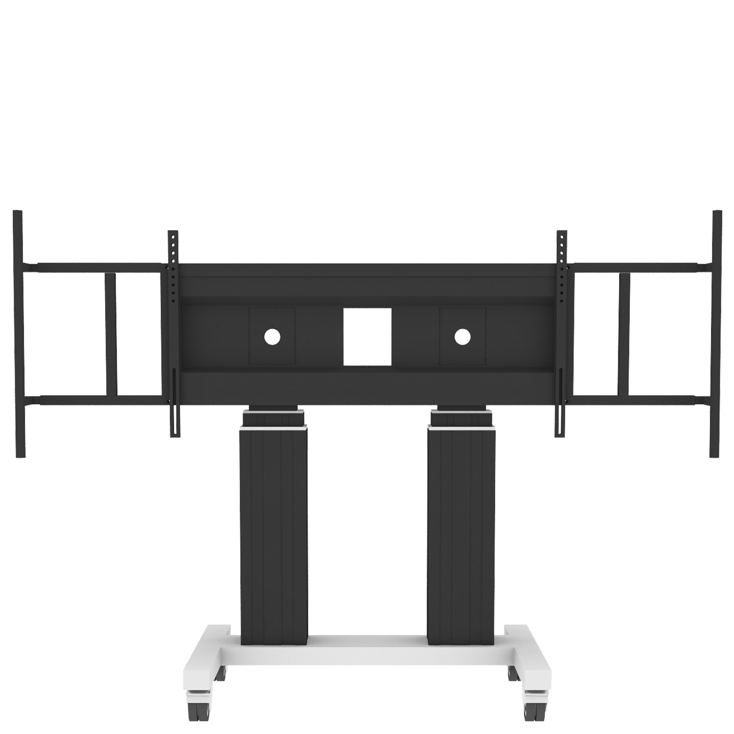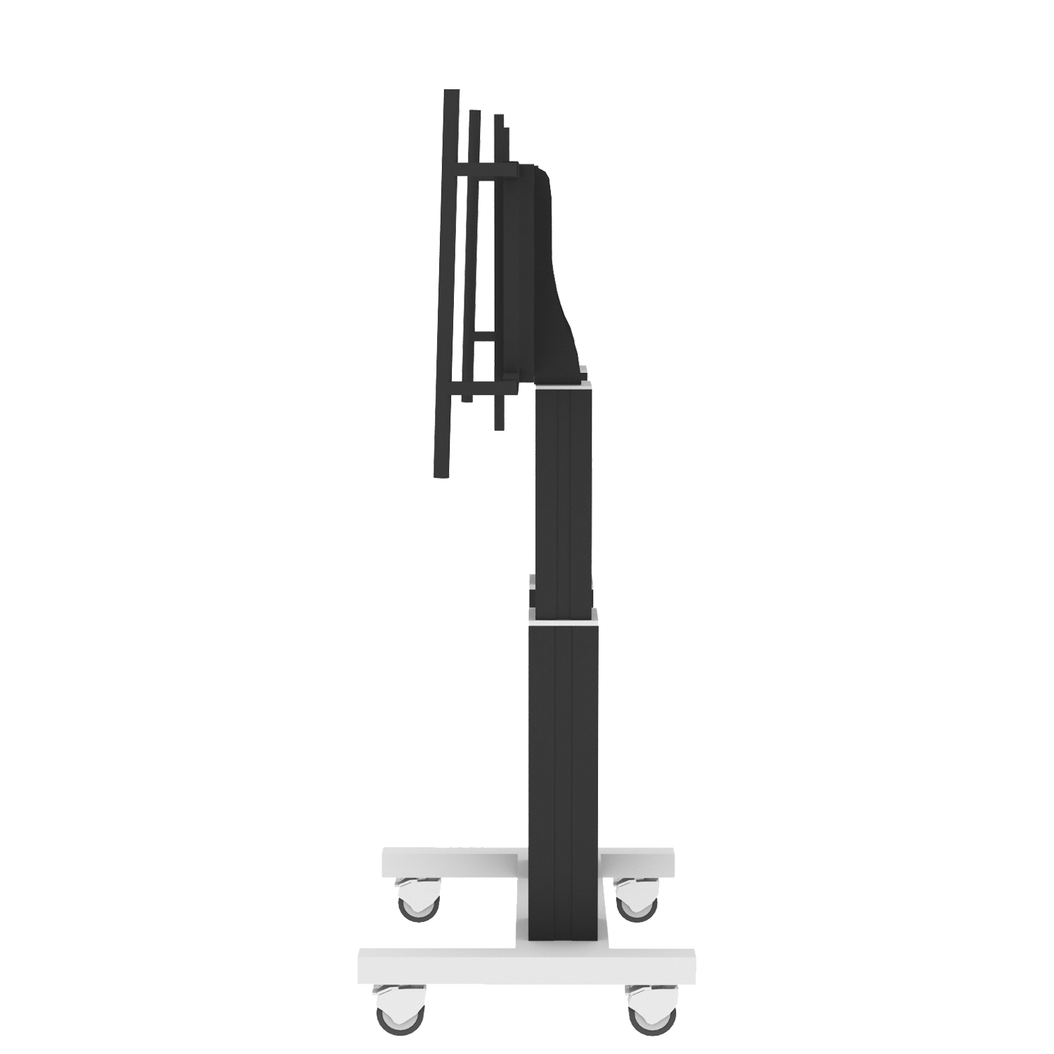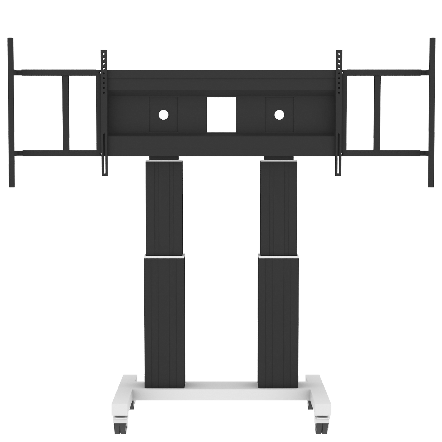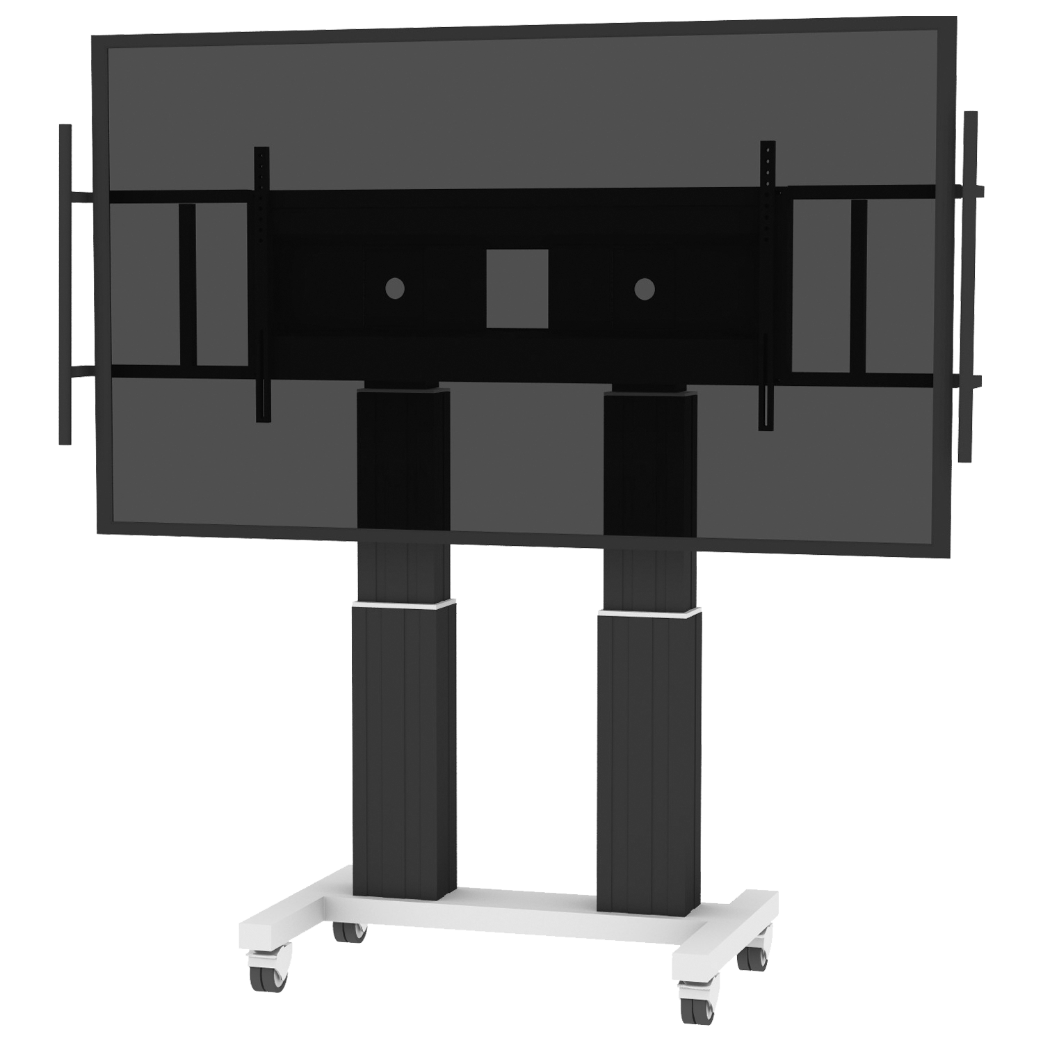 Elektrisch in hoogte verstelbare verrijdbare tv standaard met XL-frame voor het plaatsen van displays. De verrijdbare tv standaard is ontworpen voor gebruik met interactieve touchscreen-monitoren. De elektrisch in hoogte verstelbare verrijdbare tv standaard wordt geleverd met een extra brede displayhouder. De mobiele monitorstandaard is uitgerust met twee gemakkelijk telescopische mastkolommen met een hoogteverstelling van 50 cm. 2 handgrepen inbegrepen. Het product wordt gedemonteerd geleverd en kan per pakketdienst worden verzonden.